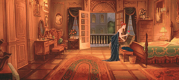 La scène d’ouverture au palais du Tsar reste l’une des plus enchanteresse avec un détail impressionnant sur les murs et les tapisseries. On a pu dire d’Anastasia qu’il n’avait pas la qualité d’un Disney, ce film est bien l’un des plus réussis du secteur de l’animation. Je trouve d’ailleurs qu’Anastasia est moins gentillet que les Disney en général avec un sérieux plutôt dilué chez les films du studio de la célèbre Souris.