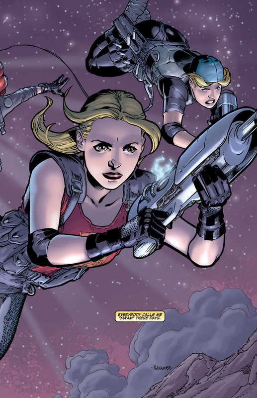 Au niveau du scénario, pas de doute, on est bien dans du Whedon, on retrouve avec plaisir les codes de la série, le même humour. Ce qui me chiffonne le plus en revanche, c’est que, Whedon s’est bien fait plaisir, un peu trop peut-être. Je trouvais déjà que les deux dernières saisons étaient de trop, que l’on avait perdu le petit truc qui faisait la série, mais malgré ça on le retrouve dans la BD même si le changement est radical. C’est bien simple on passe du fantastique à la science-fiction et le temps du bon vieux Sunnydale me manque, je regrette le temps des trois premières saisons. A la fin de la série, j’imaginais déjà le futur de Buffy, un futur où elle combattrait les démons bien sur, mais où elle aurait une vie sociale, où elle rechercherait les nouvelles tueuses et tout et tout, mais j’étais quand même loin d’être préparée à ça!