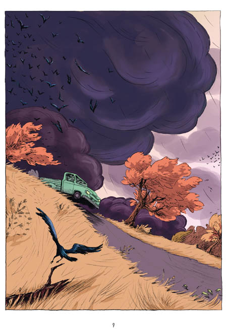 La première chose qui marque dans Hoodoo darlin’, c’est le trait de Léonie Bischoff. Beau, coloré, je m’en suis délectée particulièrement sur les planches horizontales. Léonie Bischoff ne se laisse pas enfermer dans les codes et casse les habitudes pour faire de sa BD, une expérience pour son lecteur. On ne lit pas une simple histoire, on la vit en même temps que son héroïne.