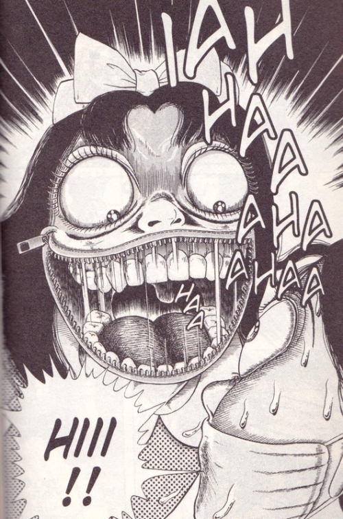 Trois nouvelles terrifiantes par la “Reine du manga d’horreur” ! Oserez-vous les lire ? Ce manga est un recueil de trois nouvelles d’horreur. On y découvre une femme à la bouche démesurément grande, prête à tout pour retrouver sa fille ; une multitude d’escargots qui ont élu domicile dans le corps d’une famille afin de contrôler leur chair et leur esprit ; et une jeune fille qui dissimule son atroce visage sous une couche de maquillage.