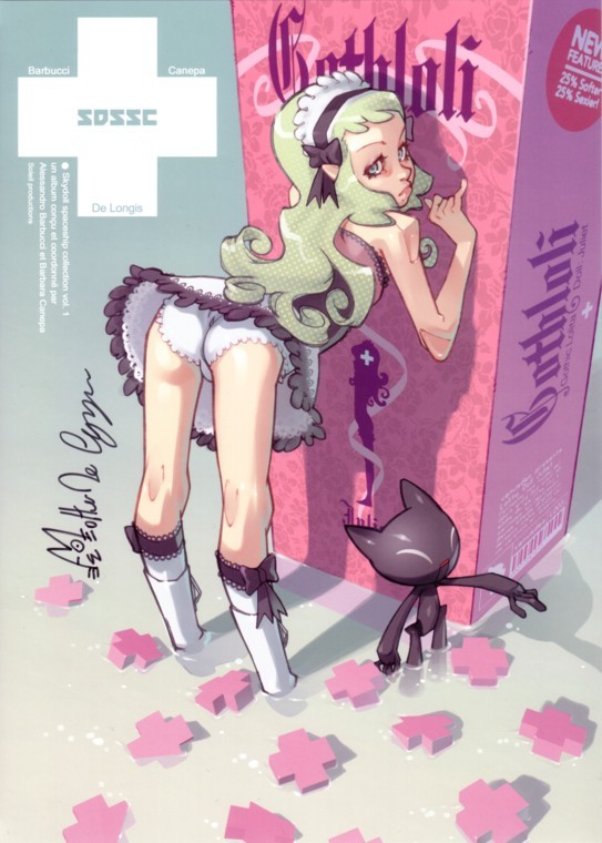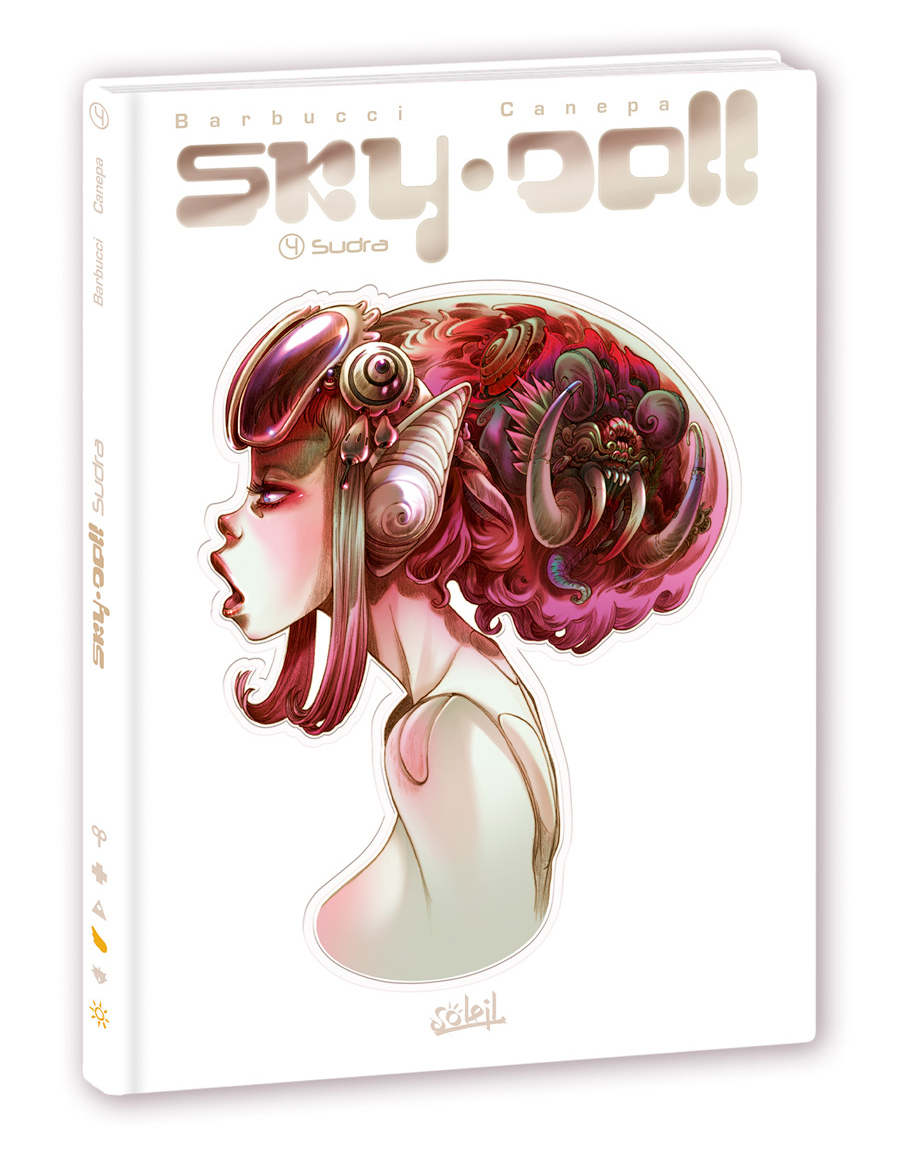 Combien de vies a une SkyDoll ? SkyDoll Spaceship Collection est un recueil de fragments de la vie de Noa, synthé-poupée à l’existence mouvementée. Six histoires où nous la voyons aux prises avec six métiers différents, dont certains véritablement extravagants, de la cow-girl dans le désert tentant de sauver un troupeau de simili-vaches infestées par des crapauds suceurs de lait, à l’héroïne sexy de dessins animés, ou à la conductrice d’une limousine où se trament des trafics louches. On la voit même tenir le rôle de la Papesse Ludovique dans les mises en scène des phantasmes érotiques et pervers des évêques du Palais. Une tranche de la vie d’une poupée “normale” sur la planète Papathéa : tantôt amusante, tantôt mélancolique ou même tragique. Six artistes exceptionnels ont été invités à illustrer ces histoires incroyables créées spécialement pour eux et pour personne d’autre.